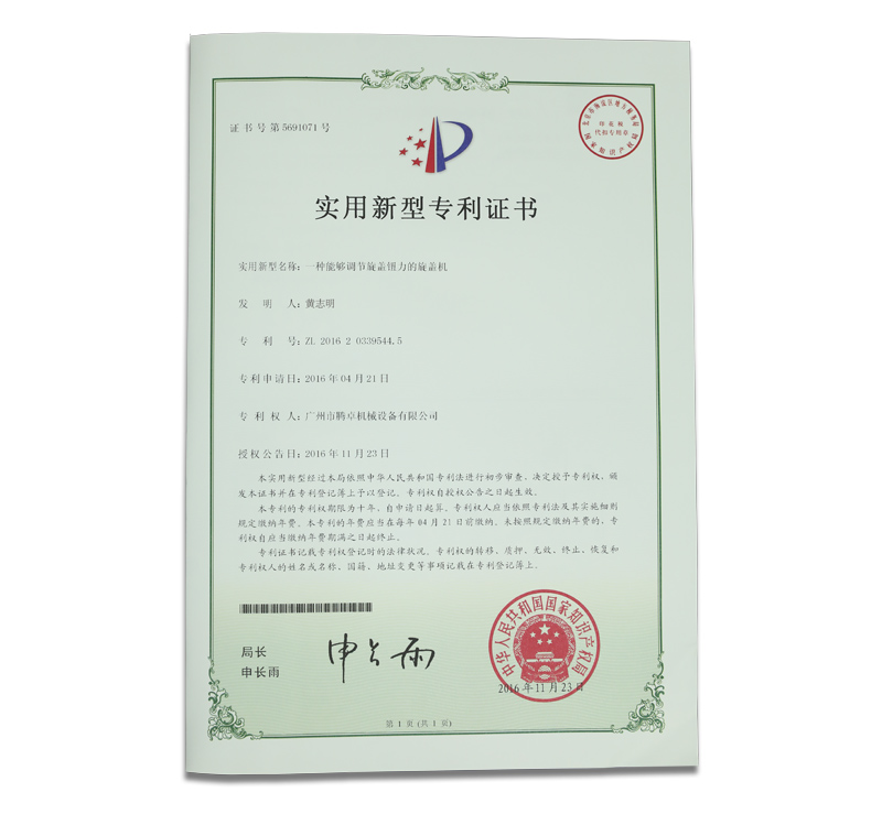 騰卓機械專利生產(chǎn)證書,專業(yè)制造包裝設備的生產(chǎn)廠家,全自動及半自動的洗瓶機,烘干機,灌裝機,旋蓋機,貼標機,套標機,打碼機等非標定制自動化包裝生產(chǎn)線