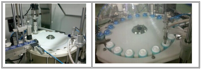 3合1灌裝機(jī),采用不銹鋼機(jī)身,灌裝、下蓋、旋蓋均一次完成。主要適用于食品、飲料、日化的灌裝旋蓋,也可以用于其它異型裝的封蓋,自動灌裝,自動下蓋,自動旋蓋封口;采用進(jìn)口無級變速系統(tǒng),可調(diào)節(jié)生產(chǎn)速度;采用凸輪分度器,使下蓋定位精確,機(jī)器運(yùn)轉(zhuǎn)平穩(wěn);進(jìn)口食品級不銹鋼,確保產(chǎn)品符合GMP標(biāo)準(zhǔn)。