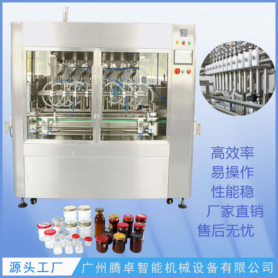 全自動醬料番茄醬灌裝機,采用伺服控制灌裝容量,精度準,調節(jié)方便,進口PLC配合觸摸屏人機界面,適合于灌制從水劑到膏霜的各種黏度產品,適用于日化、醫(yī)藥、食品、農藥等各個行業(yè)。